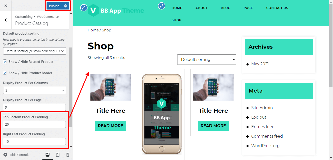 Here You have an option to top-bottom, left-right padding for product border and image.