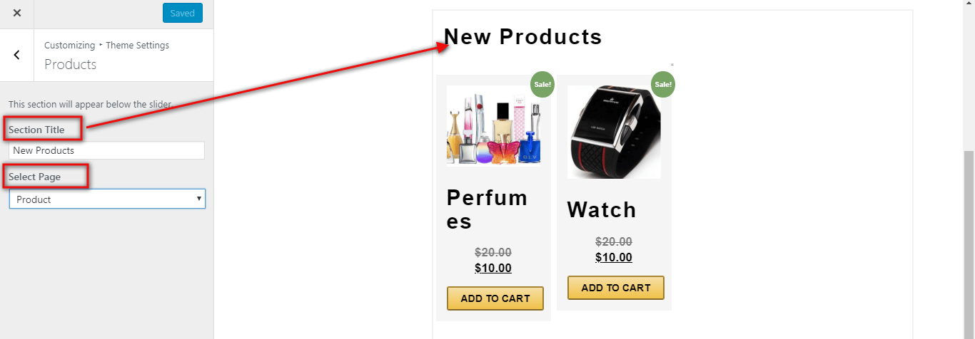 Setup Product Section