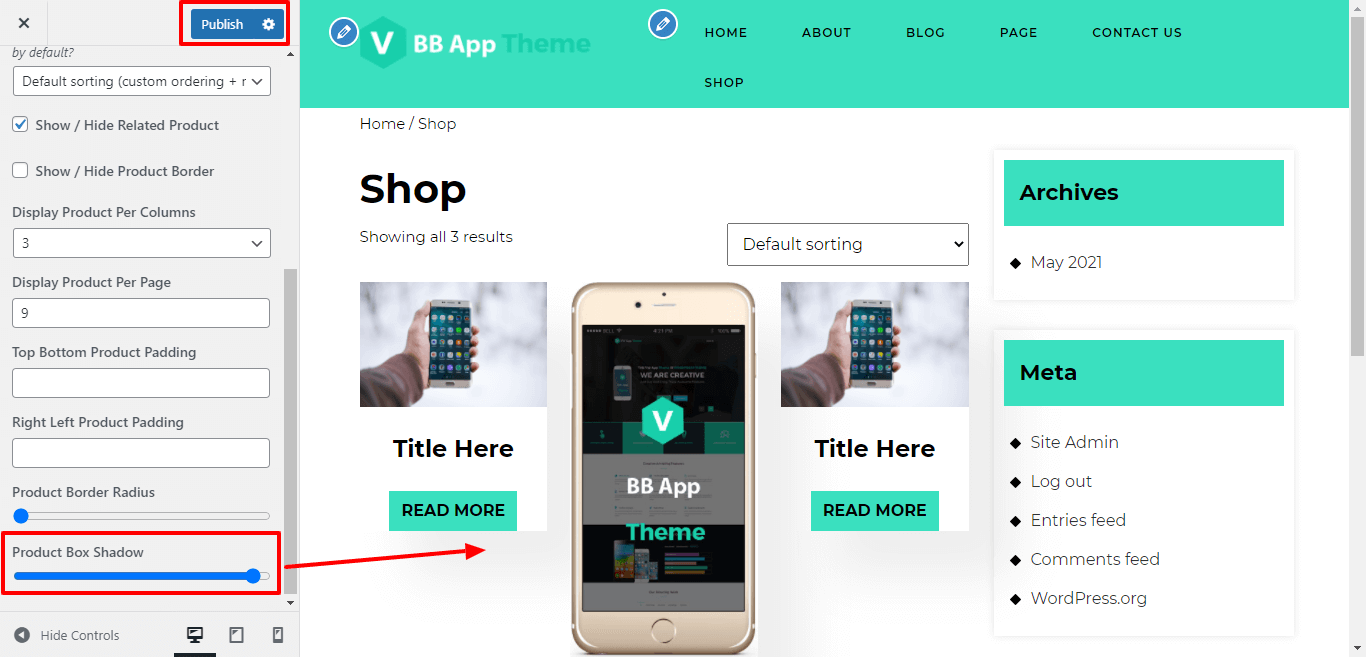 Here You have an option to give box shadow to the product.