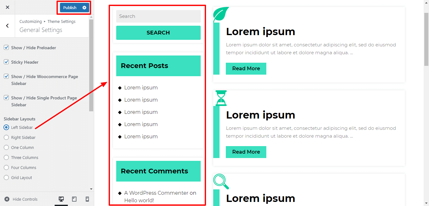 Go to Appearance >> Customize >> Themes Settings >> General Settings