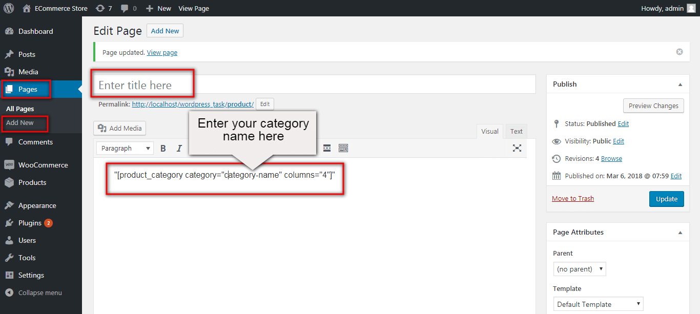 First of all create pages from go to Pages >> Add new page.