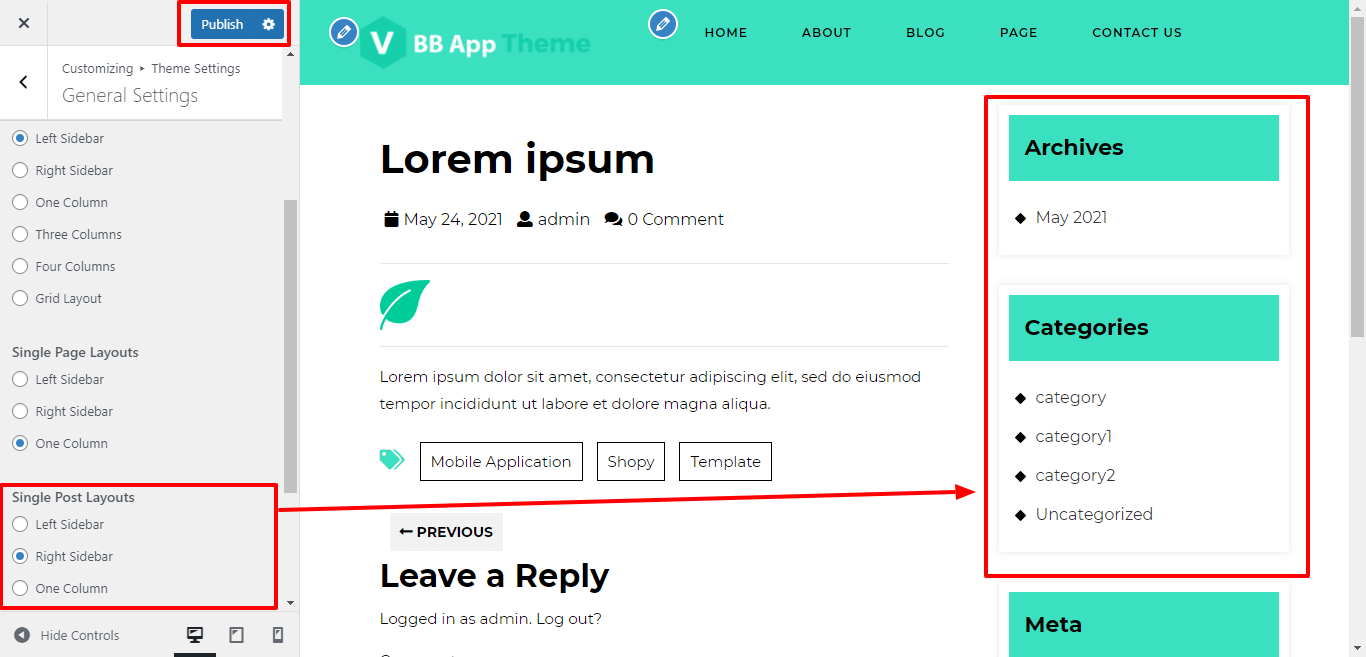In Layout Settings, you can select the Blog Post Layout Sidebar.