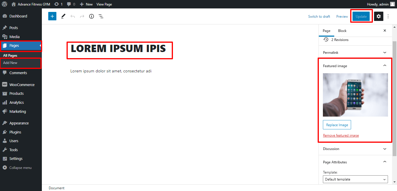 1. Create Page to set template: Go to Dashboard >> Pages >> Add New Page.