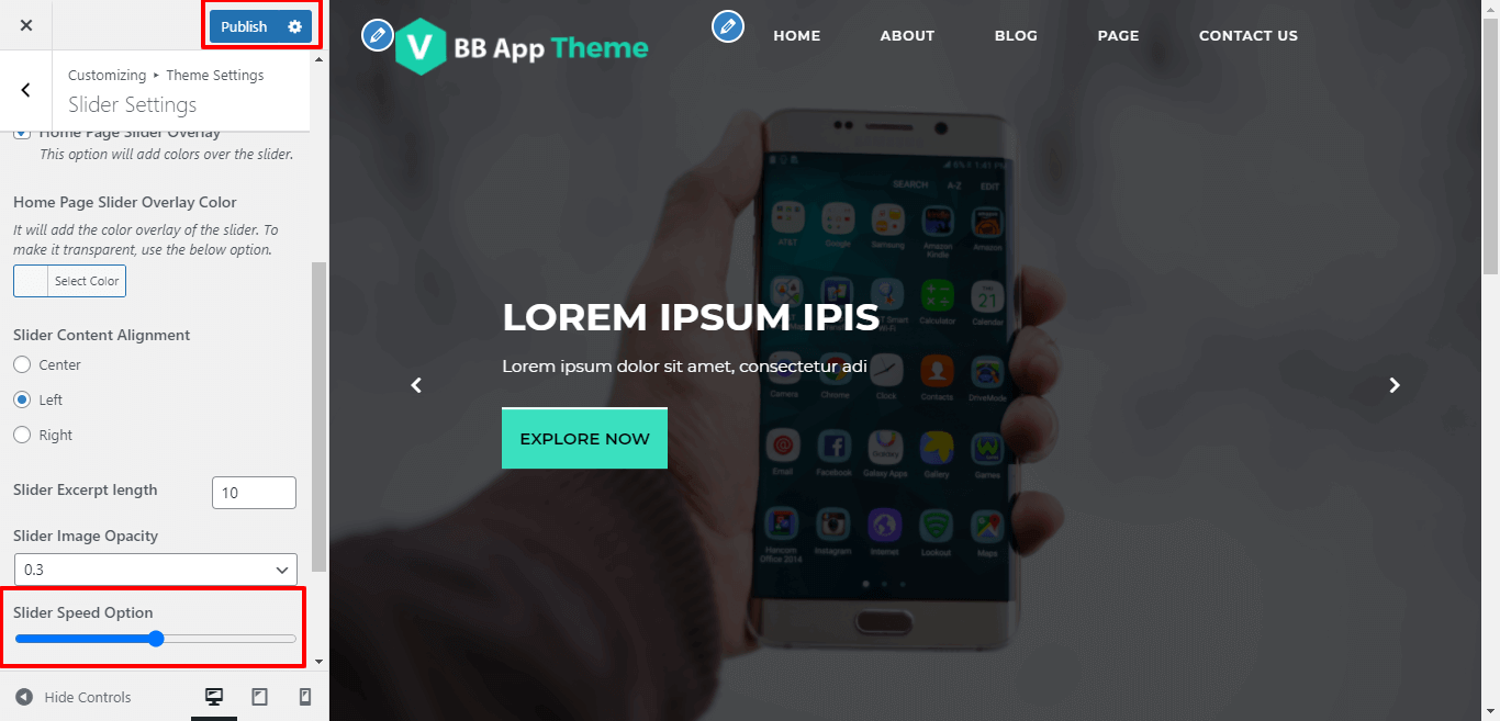 Here You have an option to the speed of slider to load slider fast for the theme.