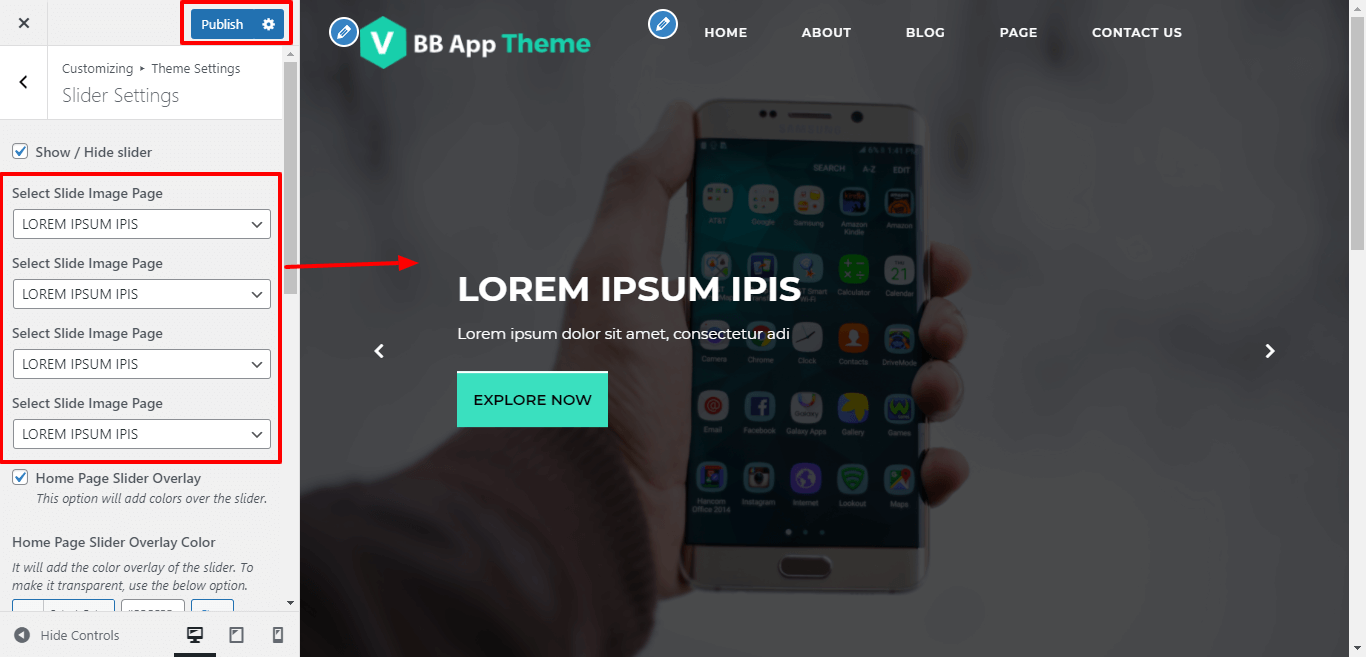 For Slider:Go to Appearance >> Customize >> Theme Settings >>Slider Setting