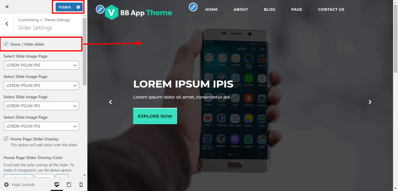 Here You can click the checkebox if you want to Show / Hide preloader.