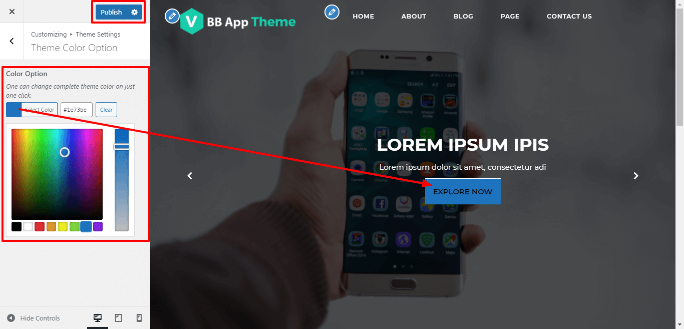 In order to proceed with theme color option, follow the below steps.