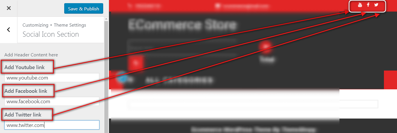 Follow these instructions to setup Social Icons section , follow the below steps.