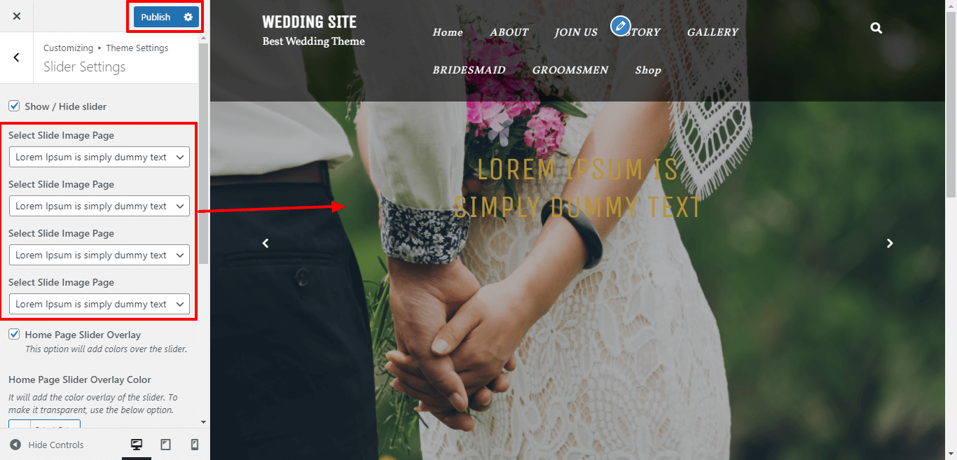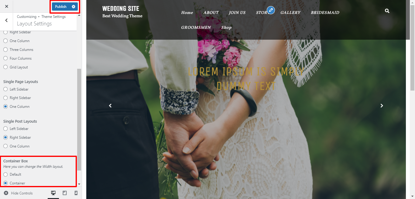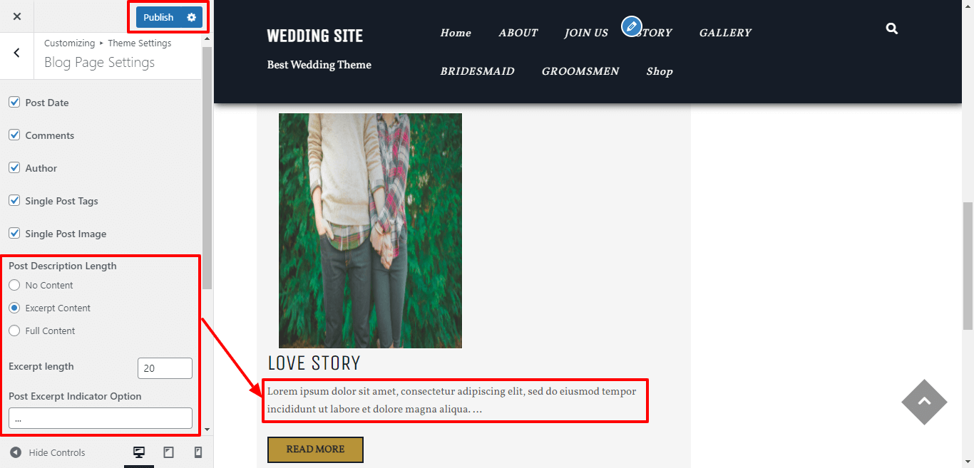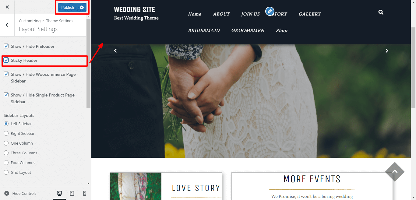2. Go to Appearance >> Customize >>Theme setting >>Love Story Section