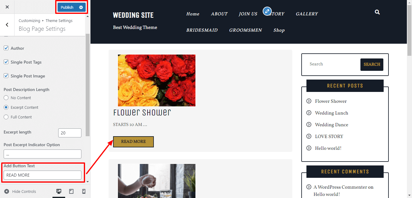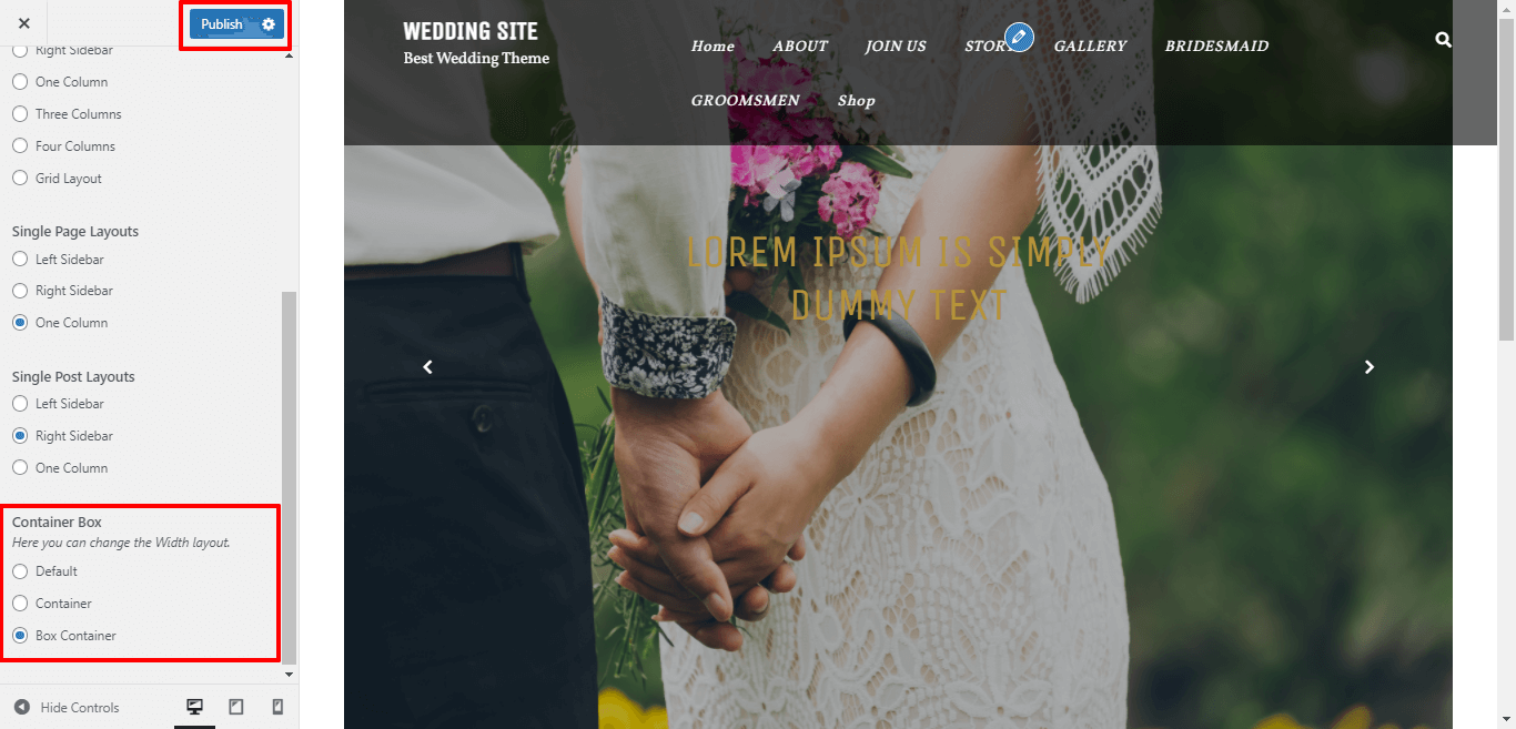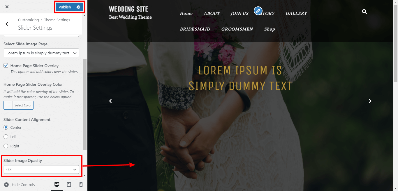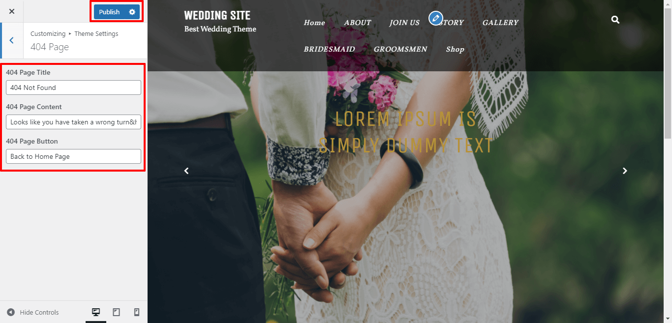 2. Go to Appearance >> Customize >>Theme setting >>Love Story Section