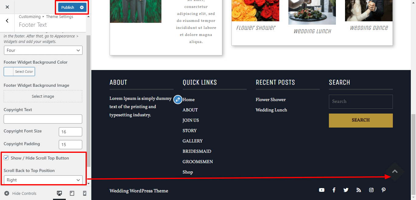 For show or hide Scroll Top Button, click twice on the checkbox and select the position for scroll top button.