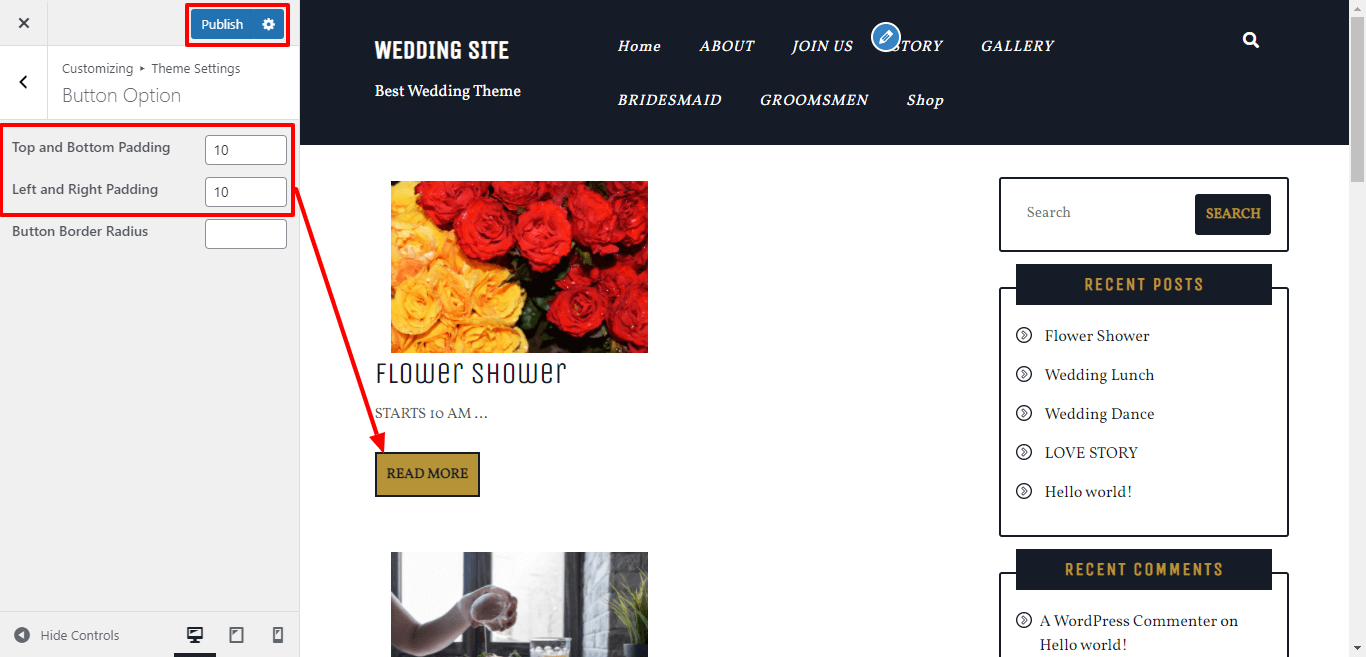 Here you can Give the Top-Bottom, Left-Right , Padding to the Button for the themes.