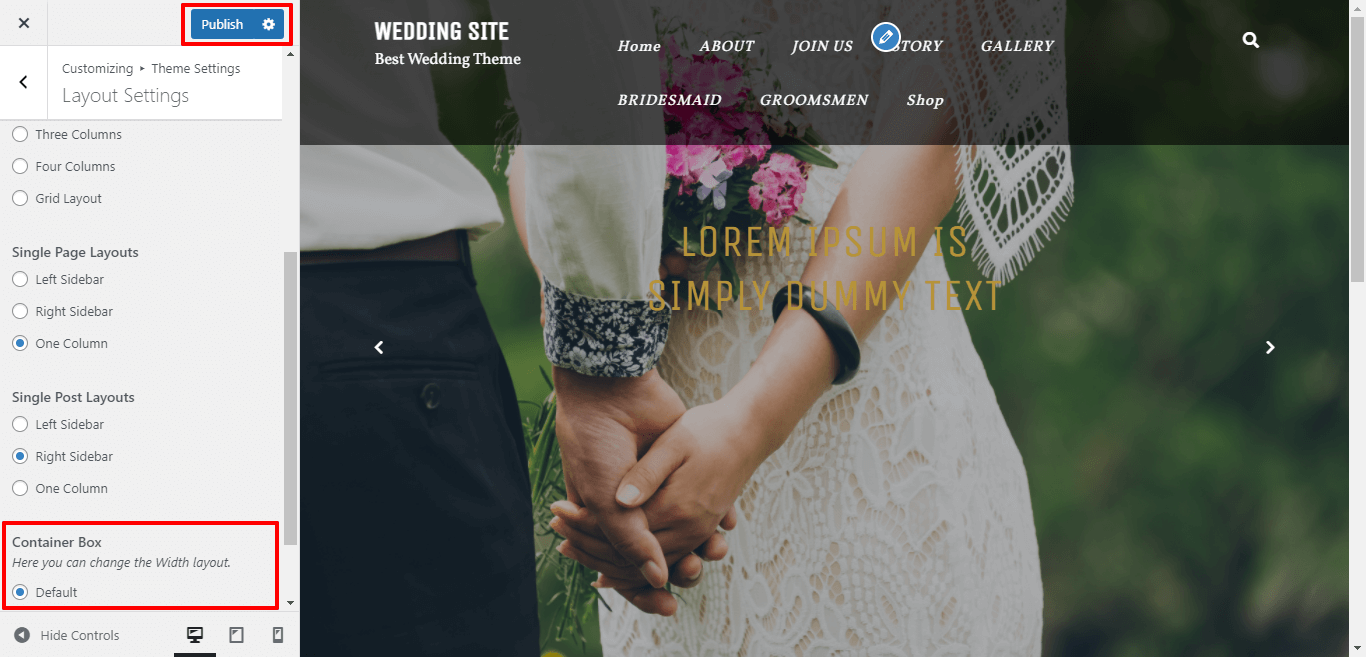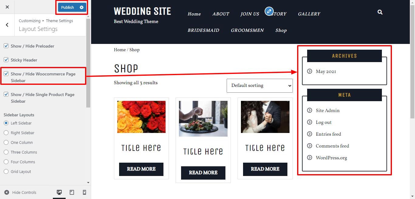 Go to Appearance >> Customize >> Themes Settings >> Layout Settings