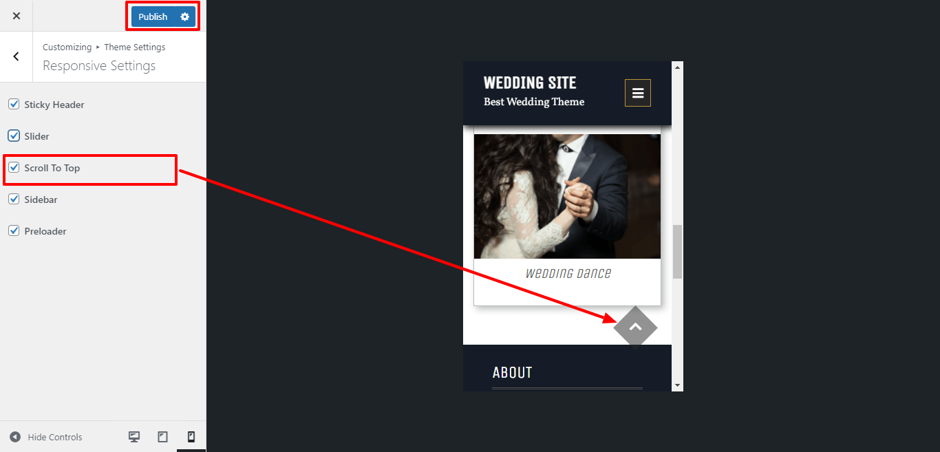 For Enable / Disable scroll to top for mobile device or responsive media click on checkbox .