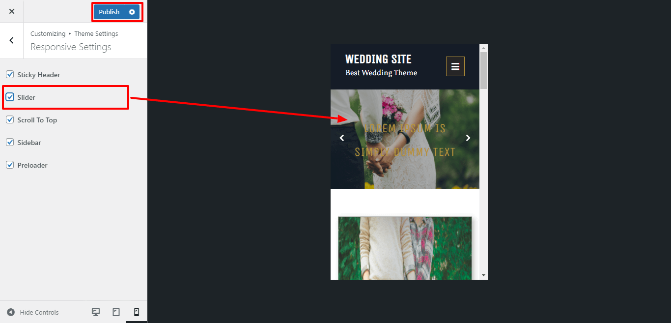 For Enable / Disable slider for mobile device or responsive media click on checkbox .