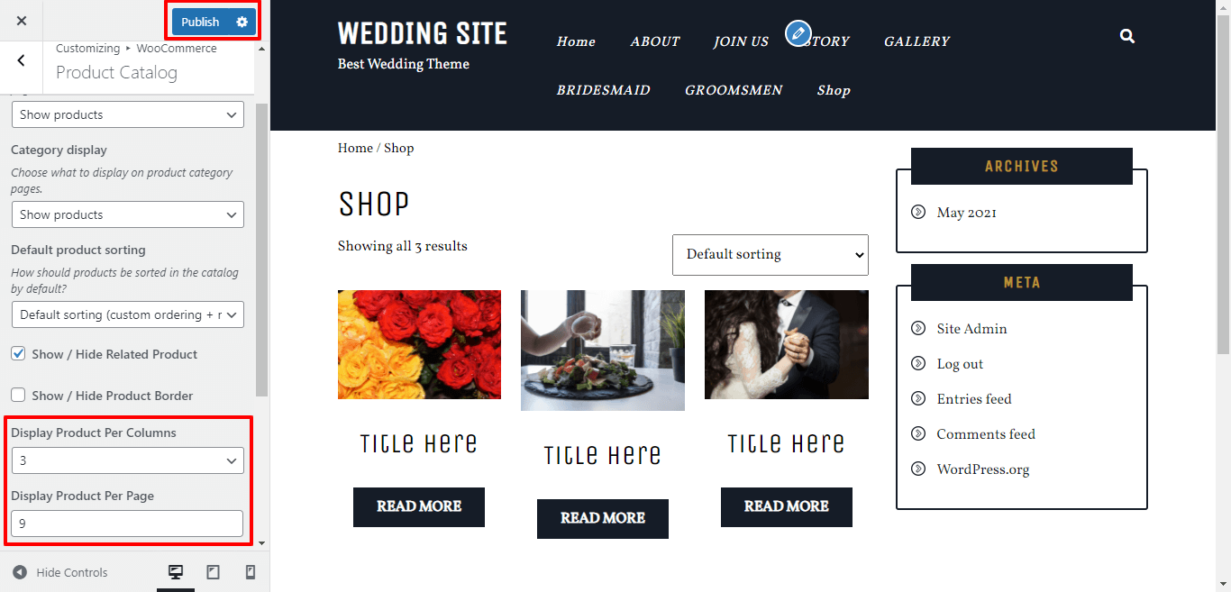 Go to Appearance >> Customize >> Woocommerce >> Product Catalog