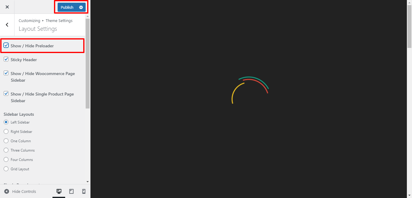 Here You can click the checkebox if you want to Show / Hide preloader.