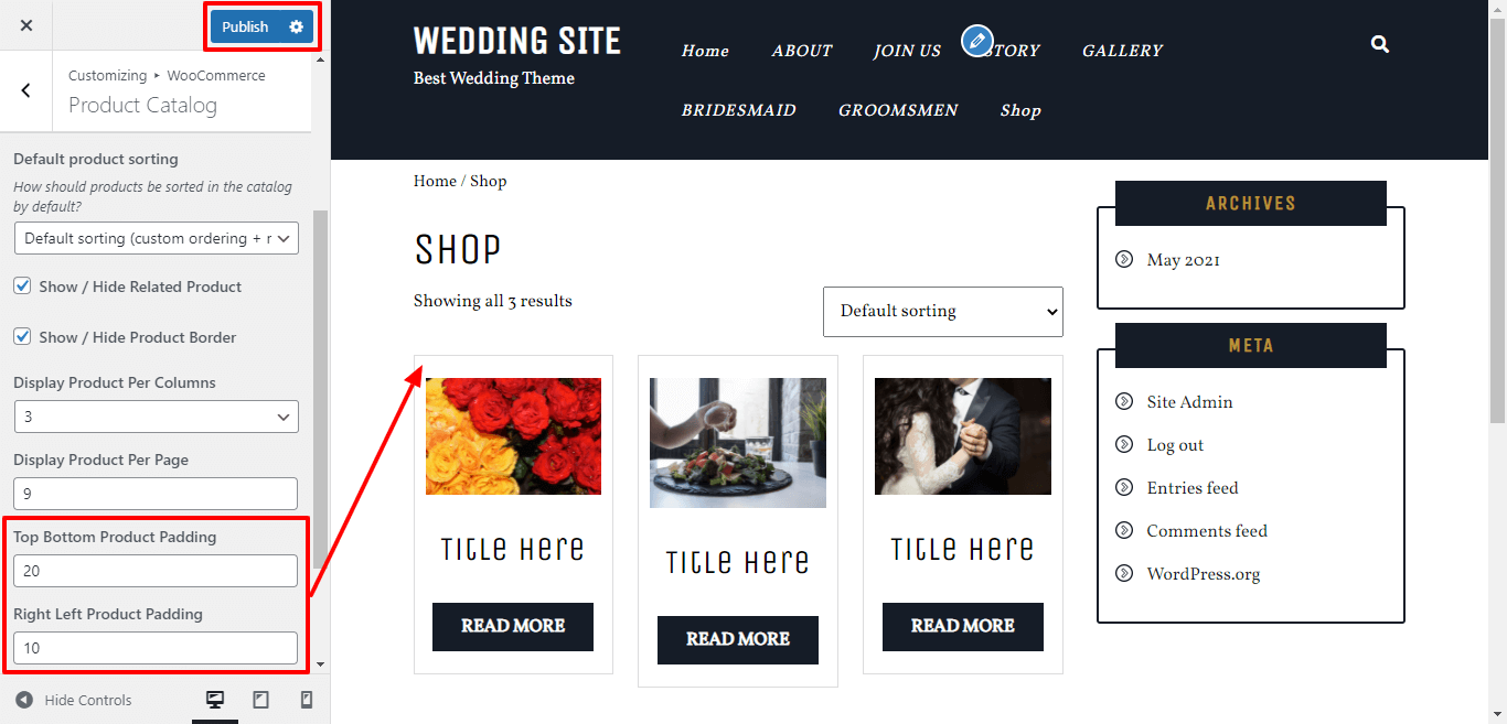 Here You have an option to top-bottom, left-right padding for product border and image.