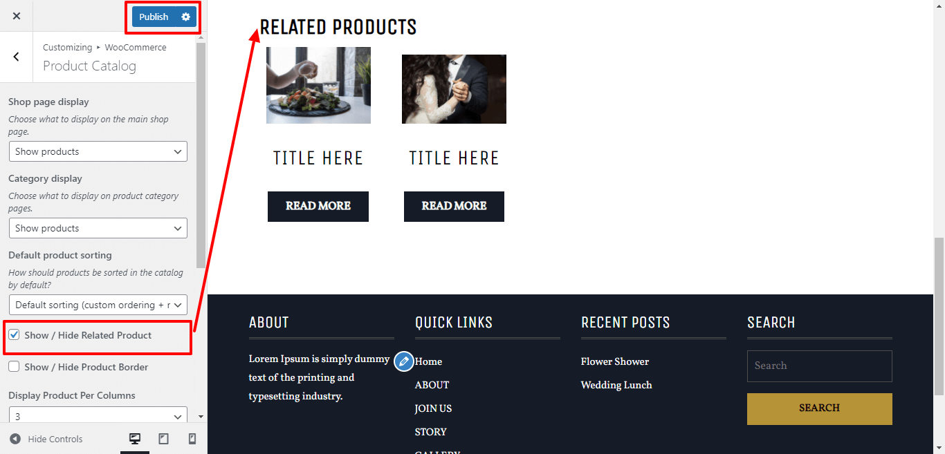 Here You have an option to Enable / Disable Feature Related product of shop page by click on checkbox.
