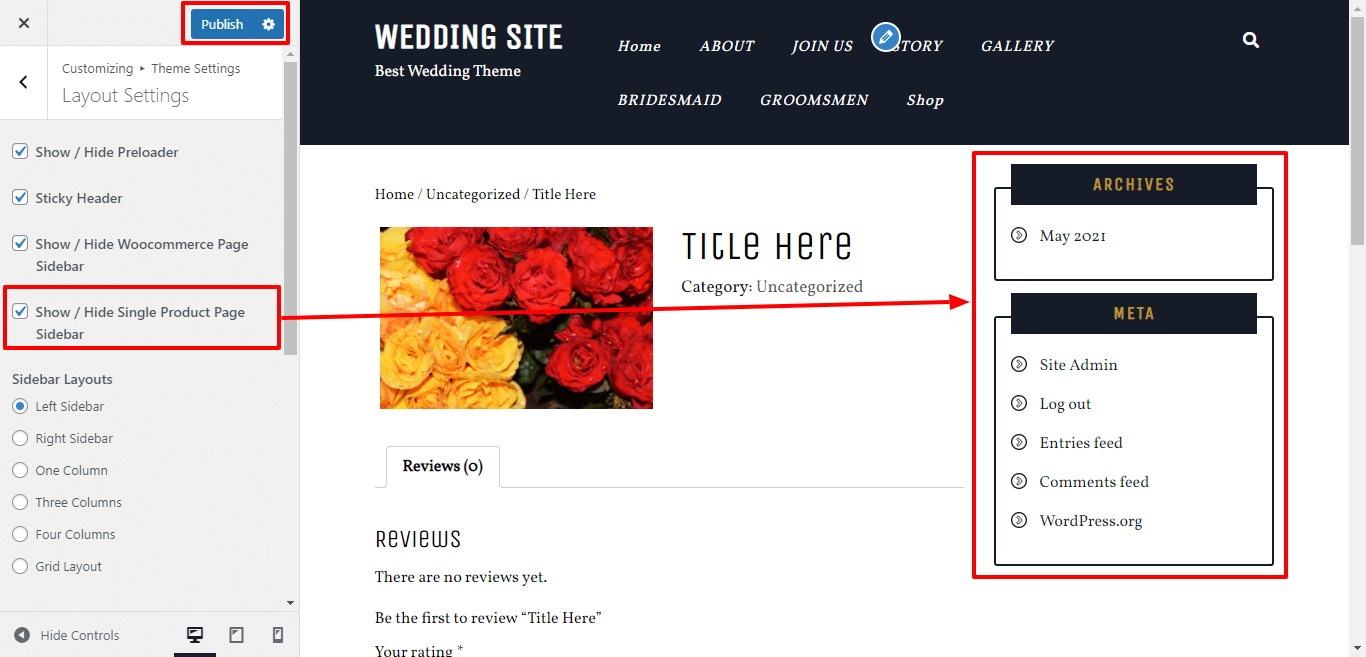 In Layout Settings, Here You can click the checkebox if you want to show / hide single product page sidebar.