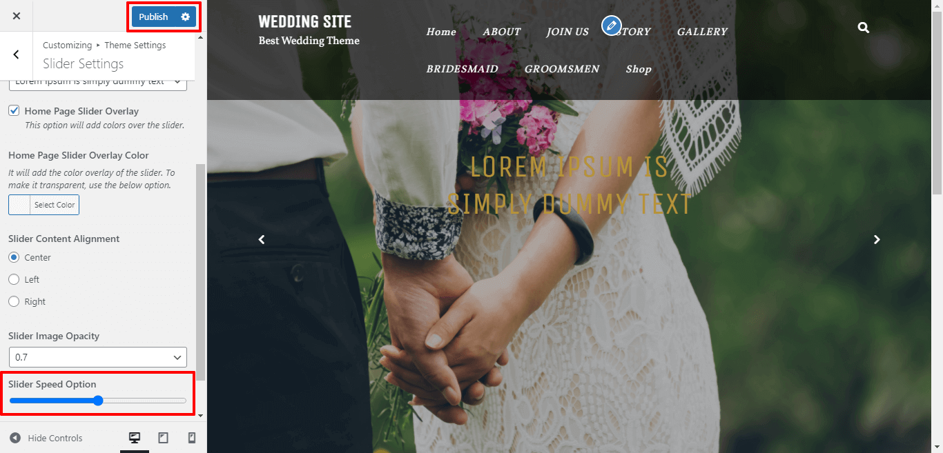 Here You have an option to the speed of slider to load slider fast for the theme.