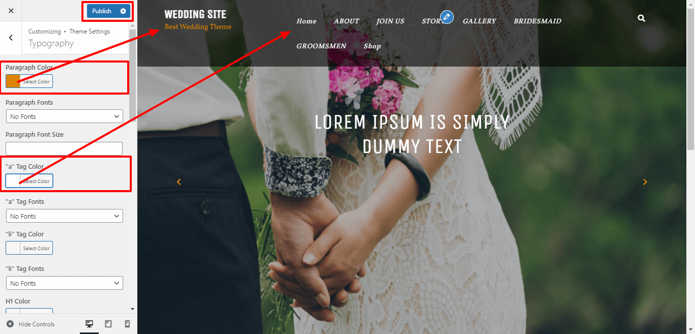 1. Color: Here you can change the colors of all Paragraph, 'a' tag, 'li' tag, H1, H2, H3, H4, H5 and H6 respectively.