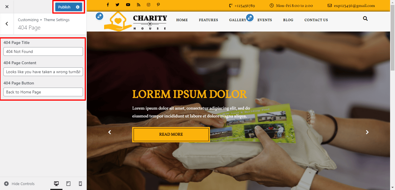 3. 404 Page Button: Here you can add 404 page button