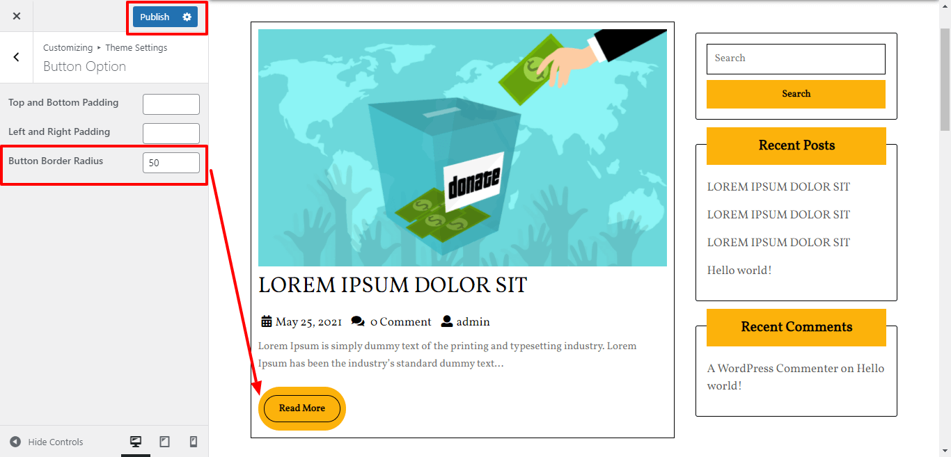 Here you can Give the Top-Bottom, Left-Right , Padding to the Button for the themes.