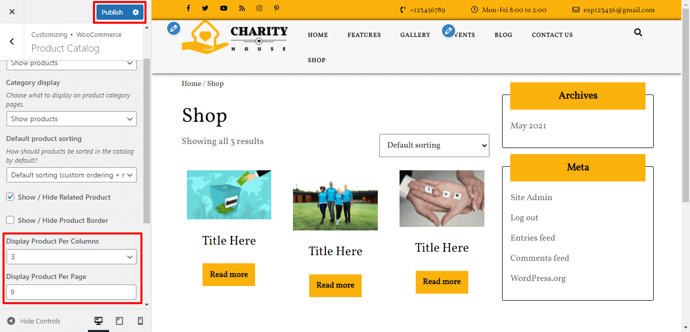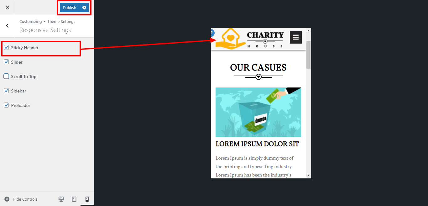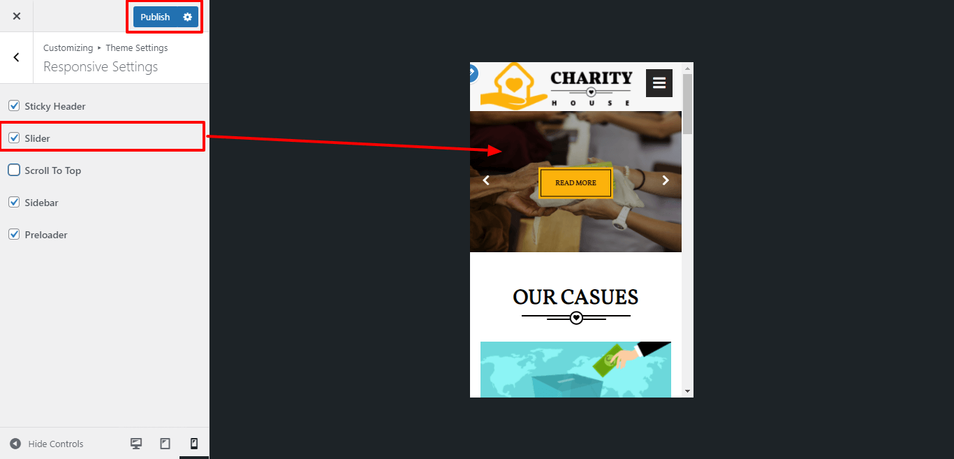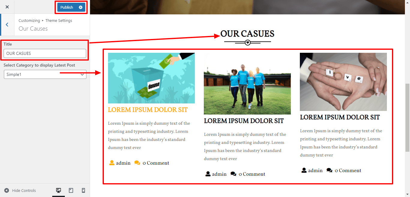 3. Go to Appearance >> Customize >>Theme setting >> Our Causes Section