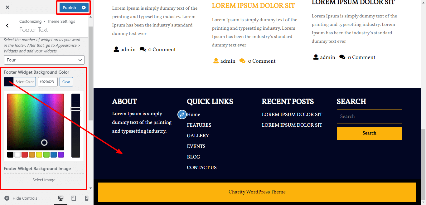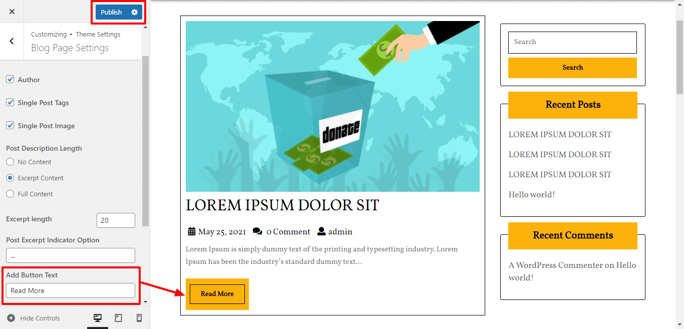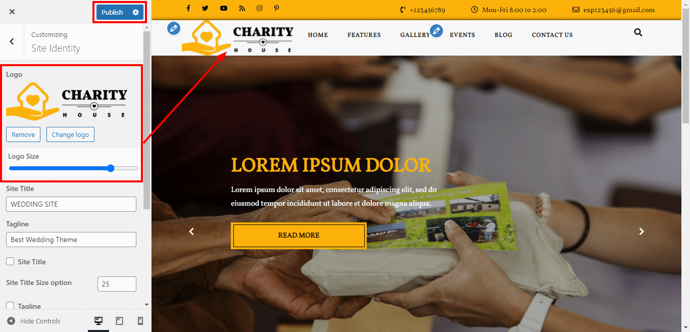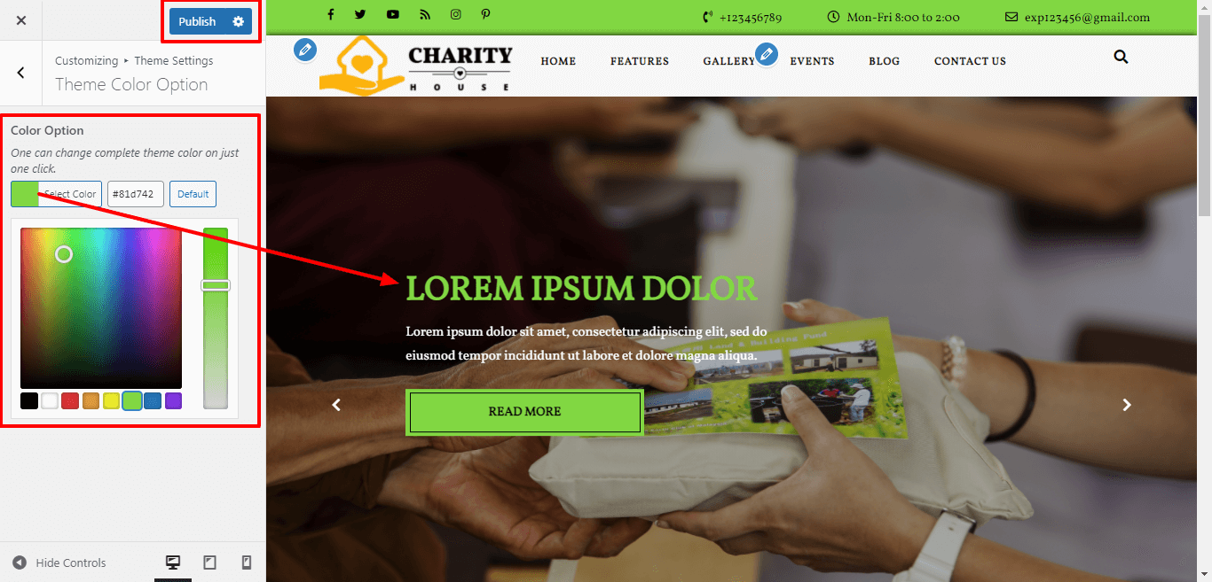3. Go to Appearance >> Customize >>Theme setting >> Our Causes Section