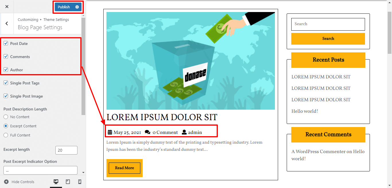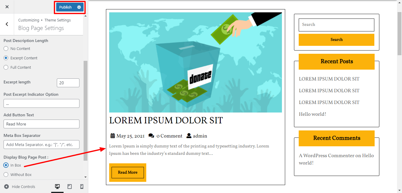 Here you can select the dispaly of blog post-box for the theme.
