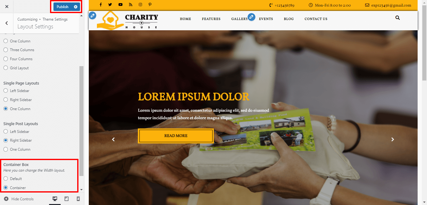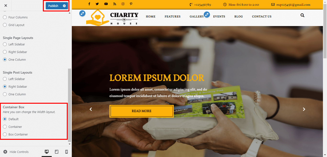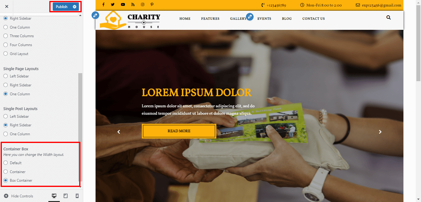 After Selecting Box-Container layout themes will look like screenshot