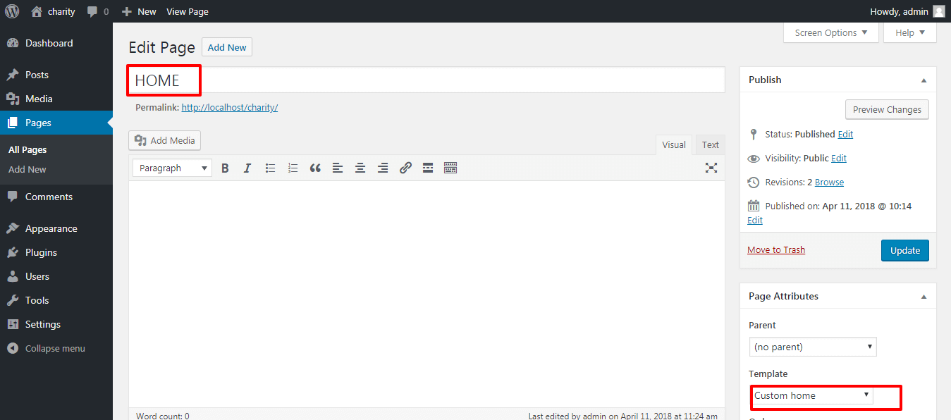 Setup Home Page Template