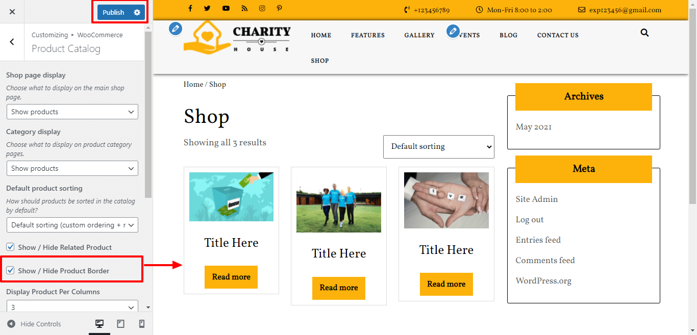 Here You have an option to Show / Hide border of product.
