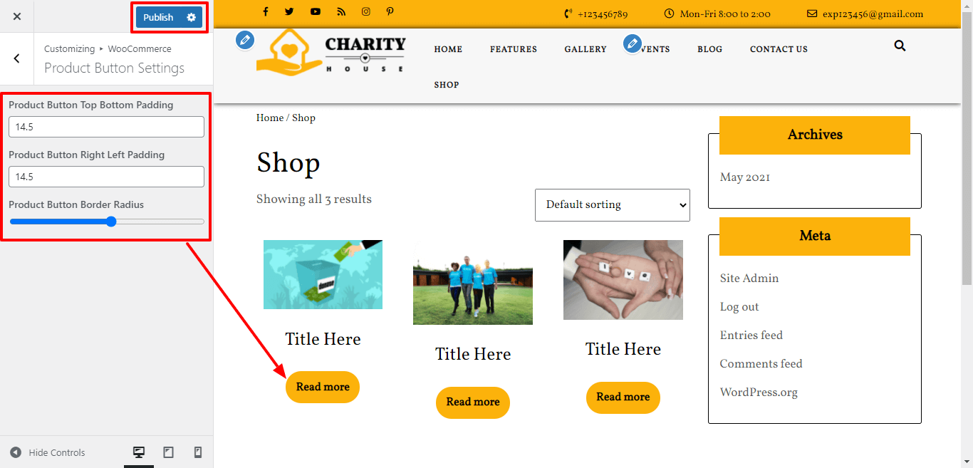 Here You have an option to add top-bottom, left-right padding product button and radius of product button for theme.