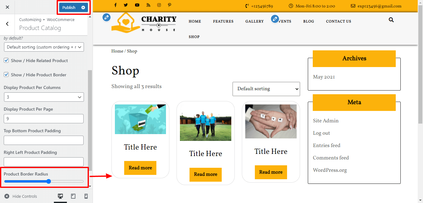 Here You have an option to give border radius to product.