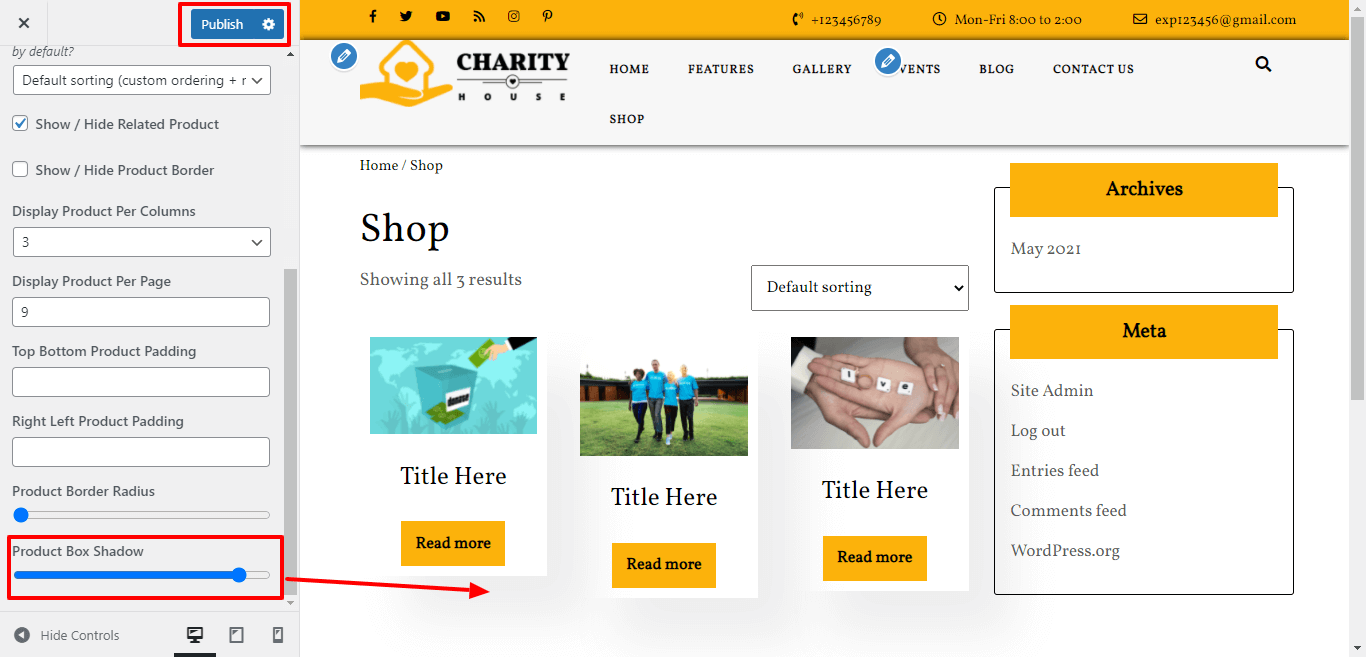 Here You have an option to give box shadow to the product.