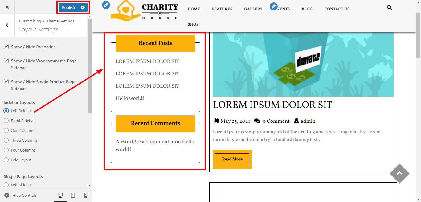 Go to Appearance >> Customize >> Themes Settings >> Layout Settings
