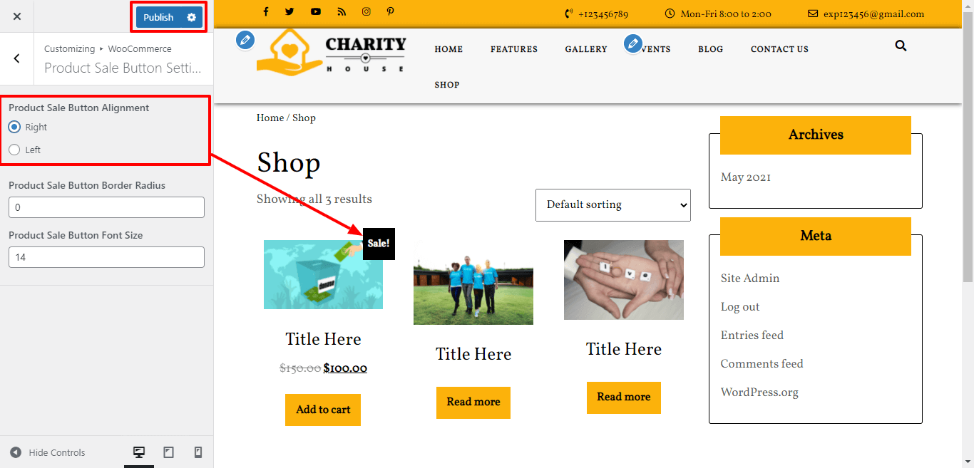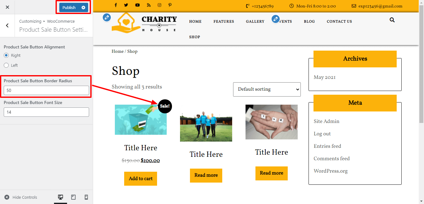 Here You have an option to add border radius for product sale button of the theme.