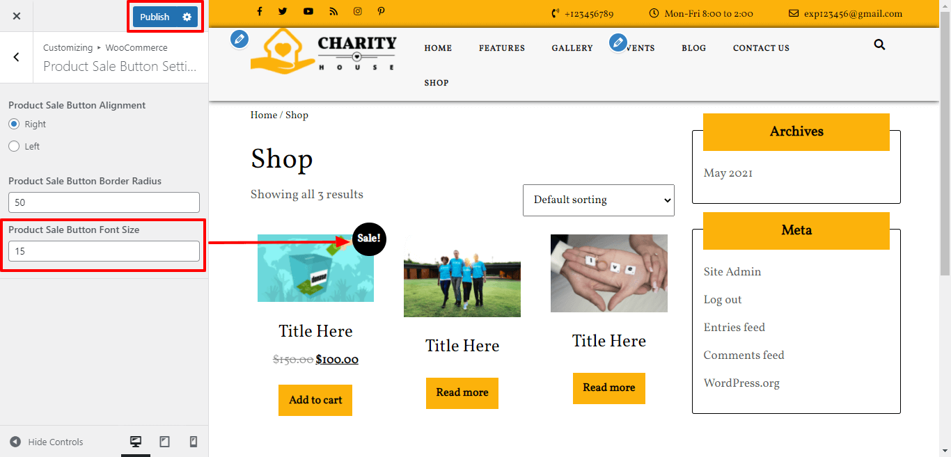 Here You have an option to add sale button font size of the theme.