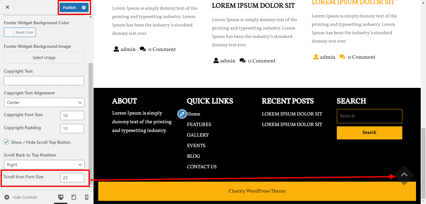 Here you can add the copyright text , copyright text alignment, copyright font size and padding for copyright text.