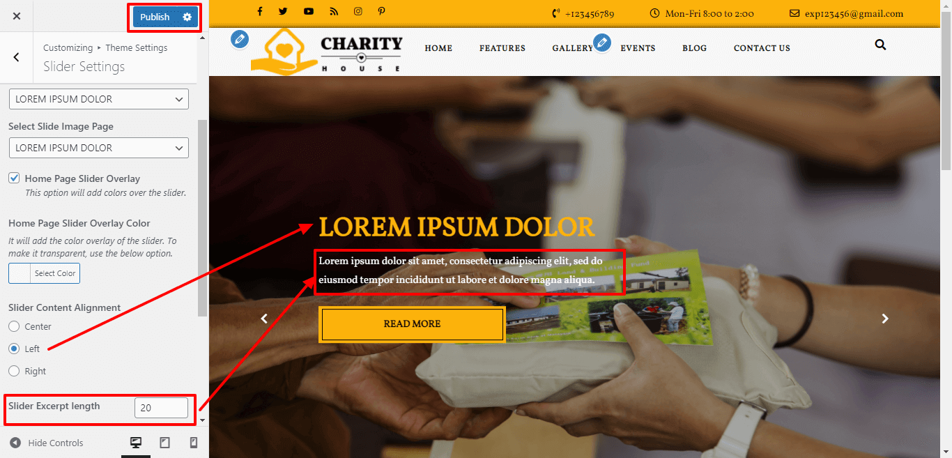 You can select the slider content alignment and select the slider excerpt length for slider content.
