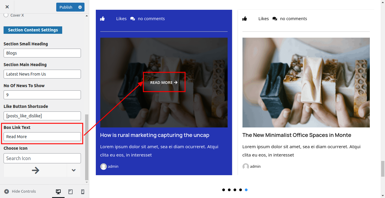 Go to Appearance >> Customize >> Theme Settings >> Latest News