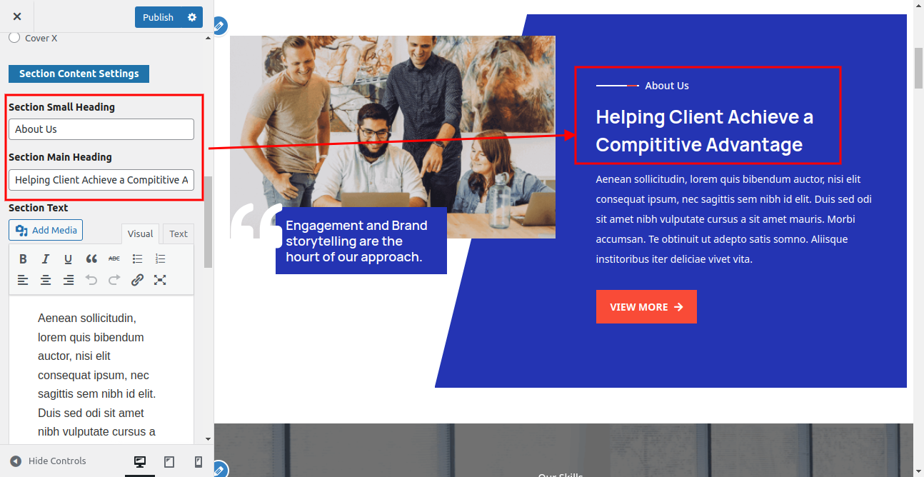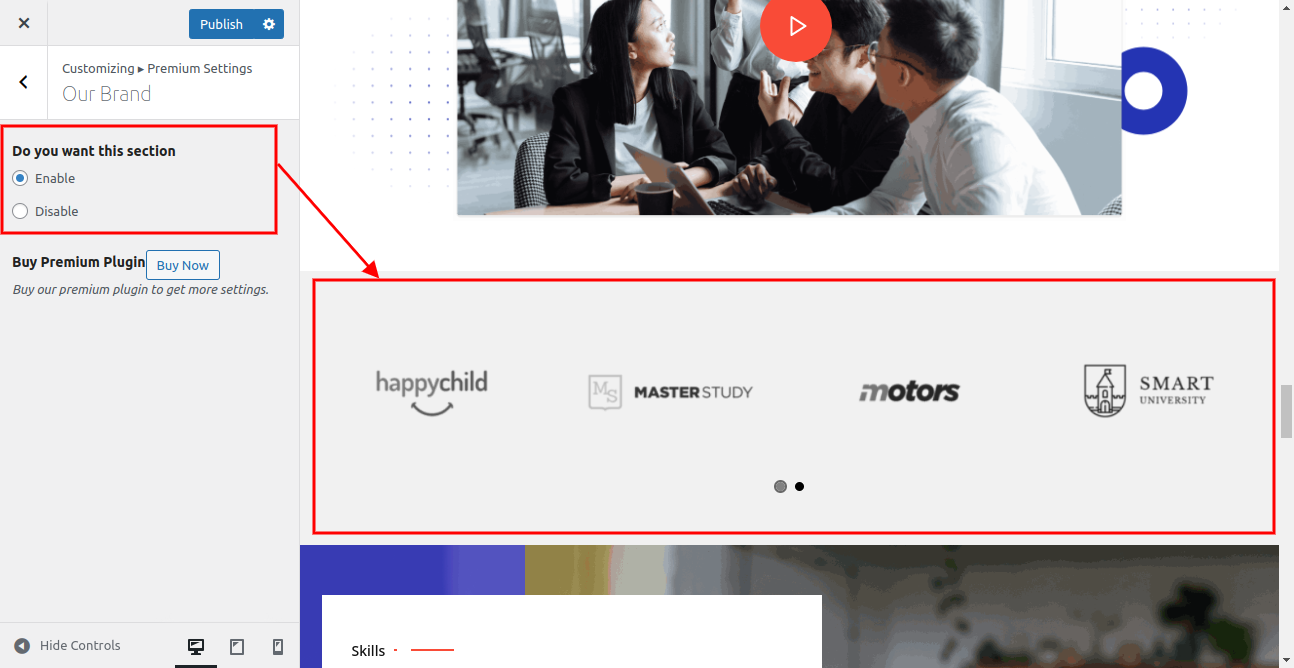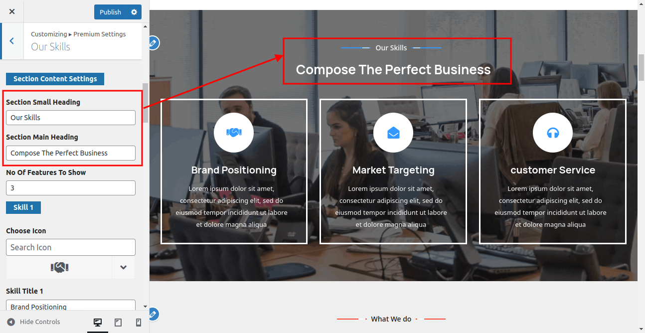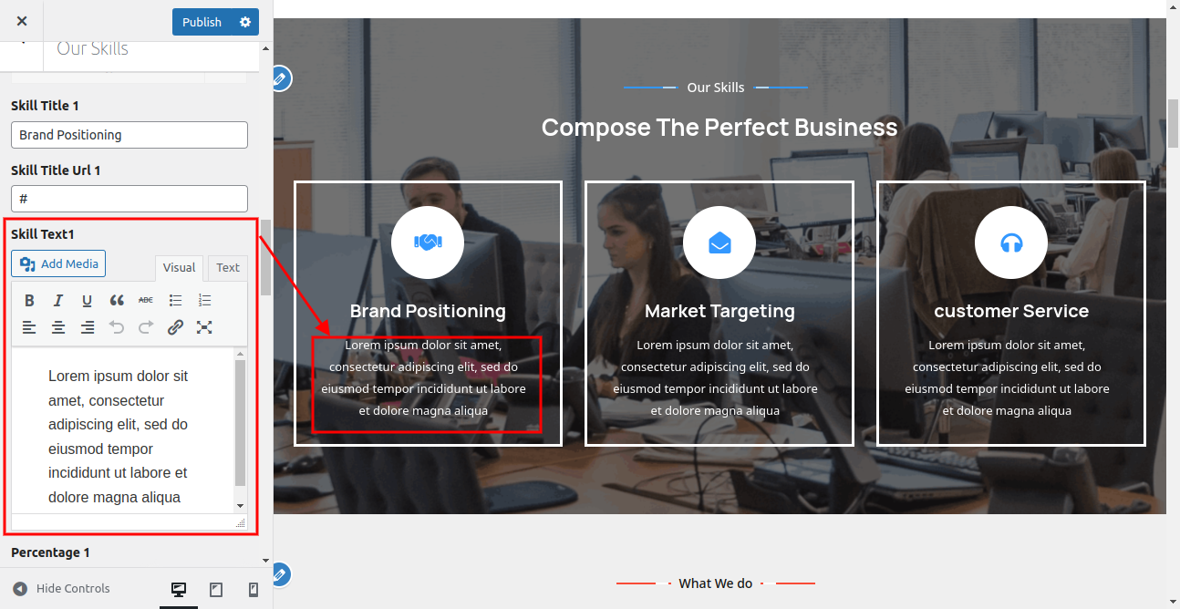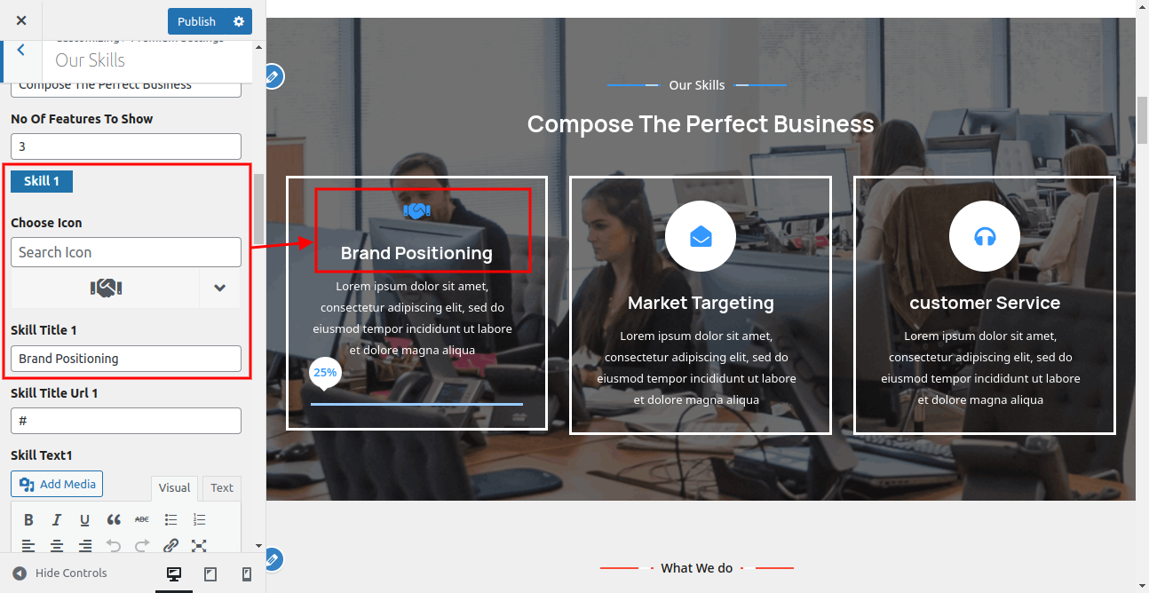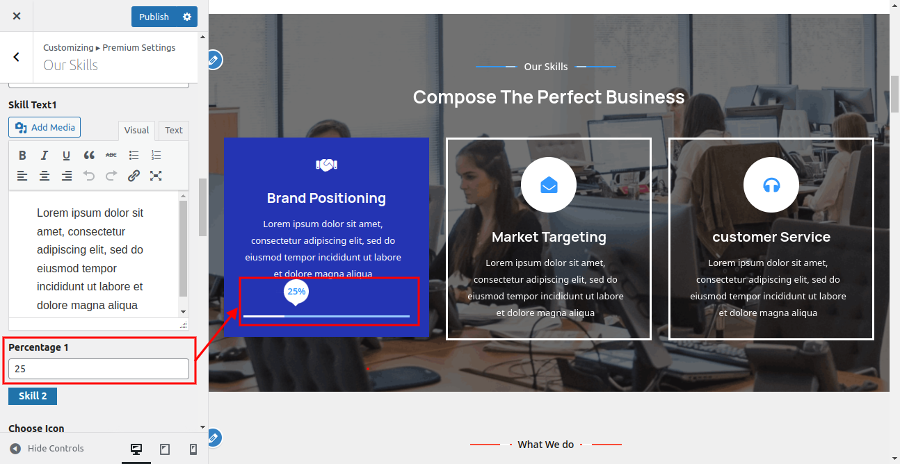 In this way you can setup Our Skills section