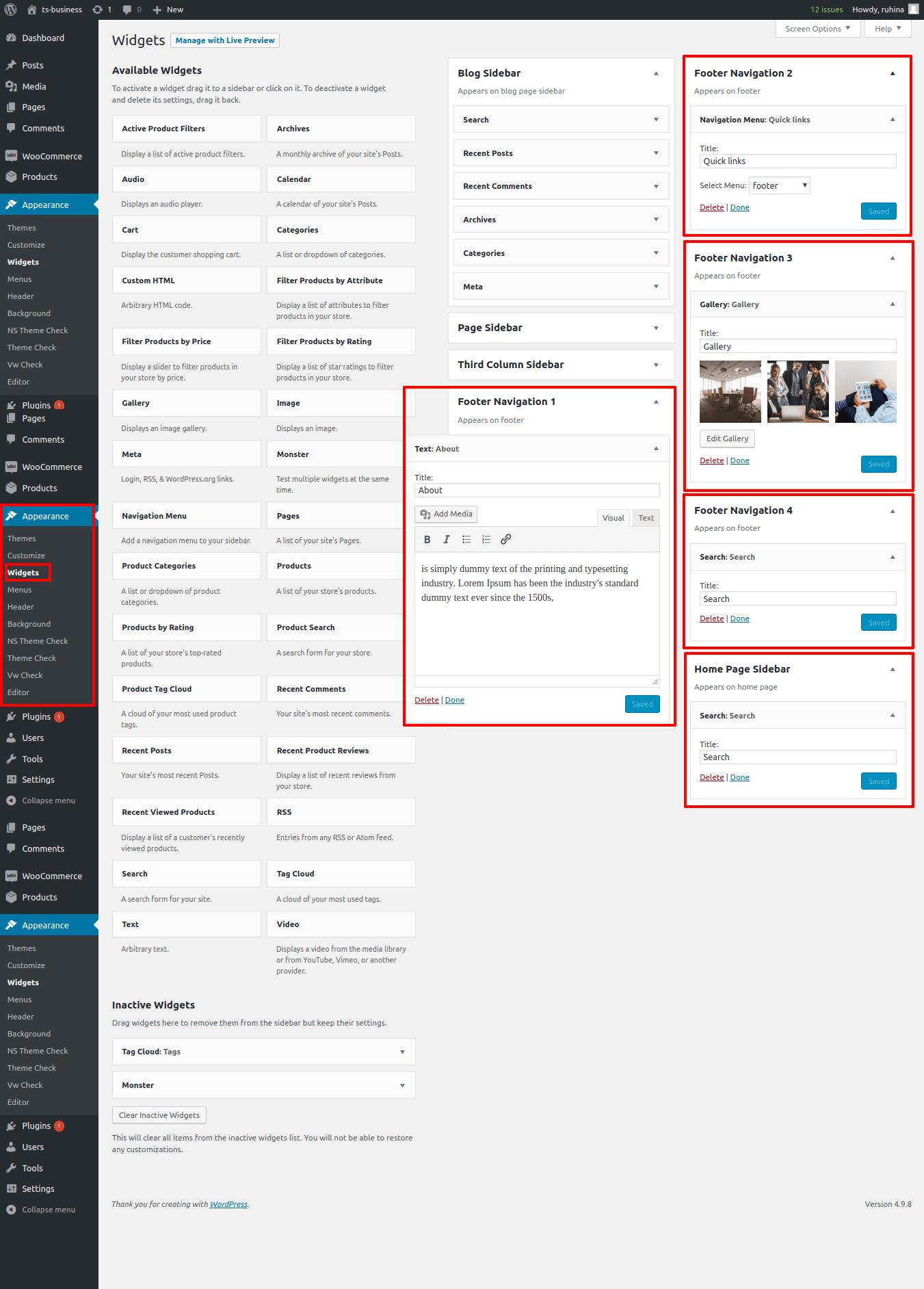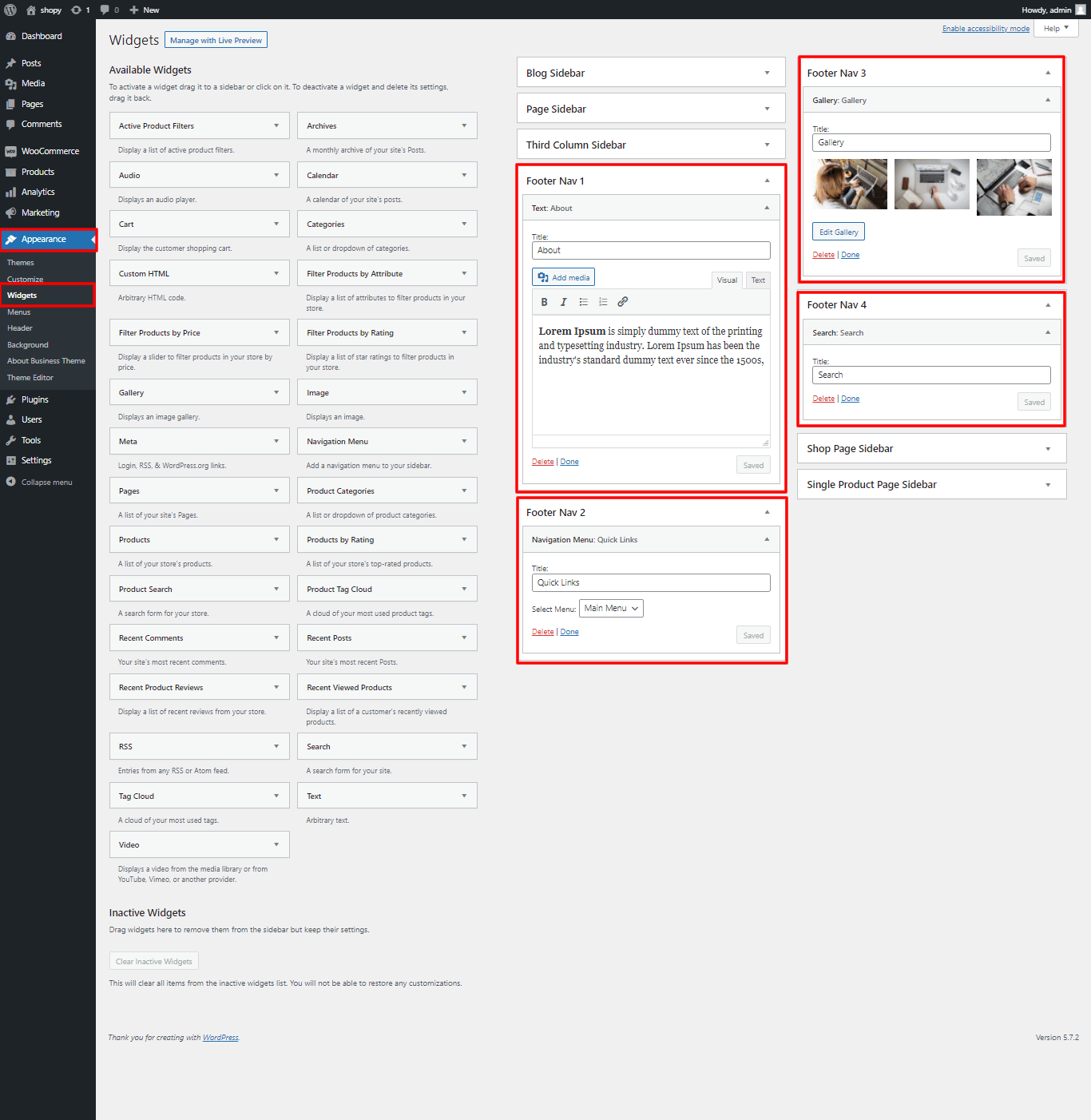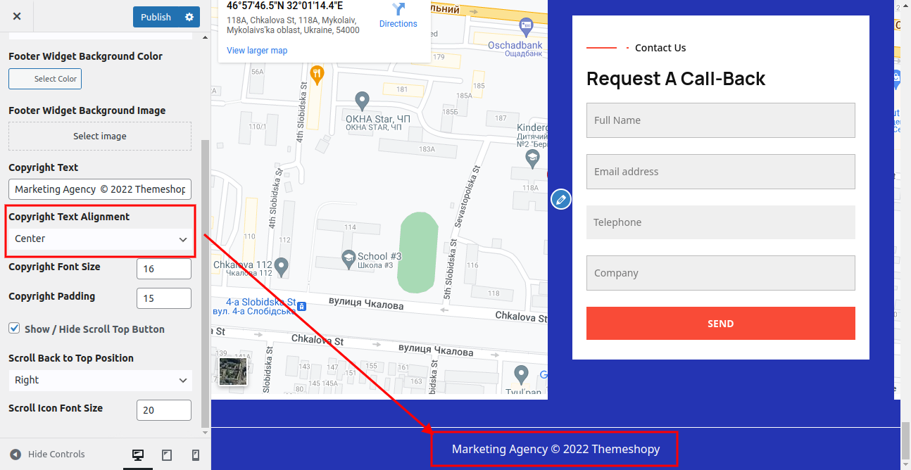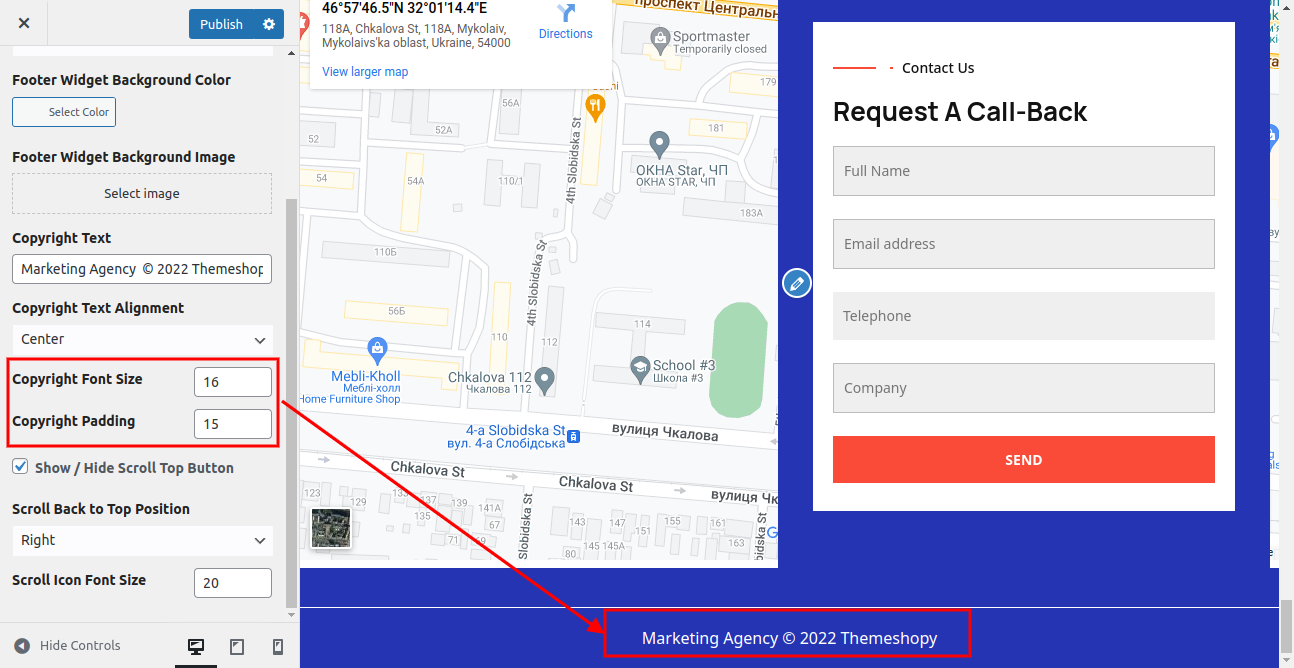 Once you add copyright text your footer text section will look like this.