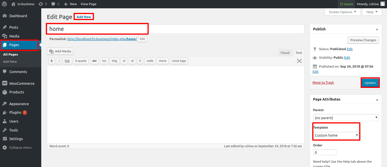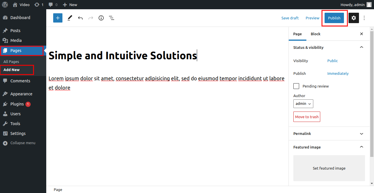 Go to Dashboard >> Pages >> Add New Page.