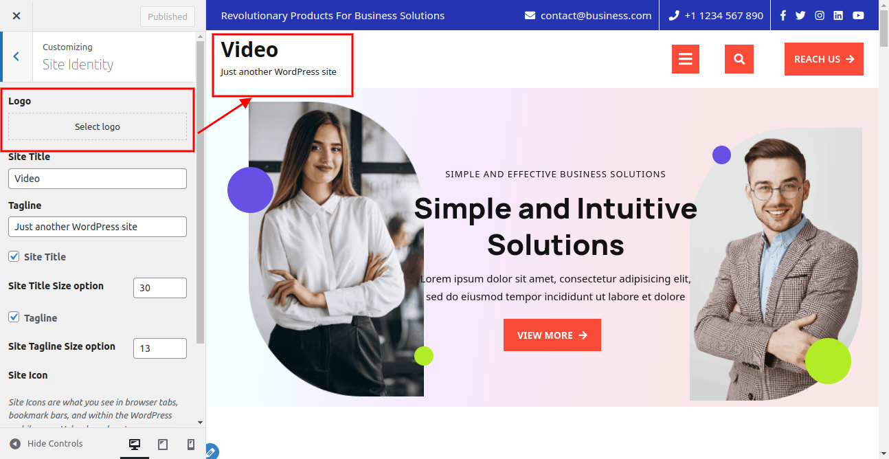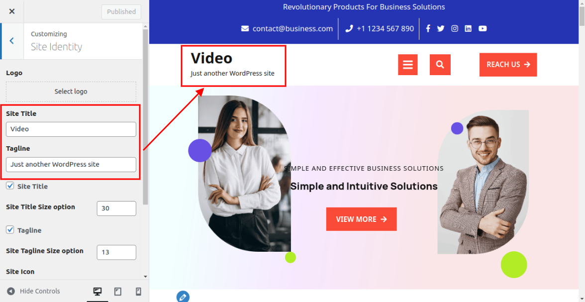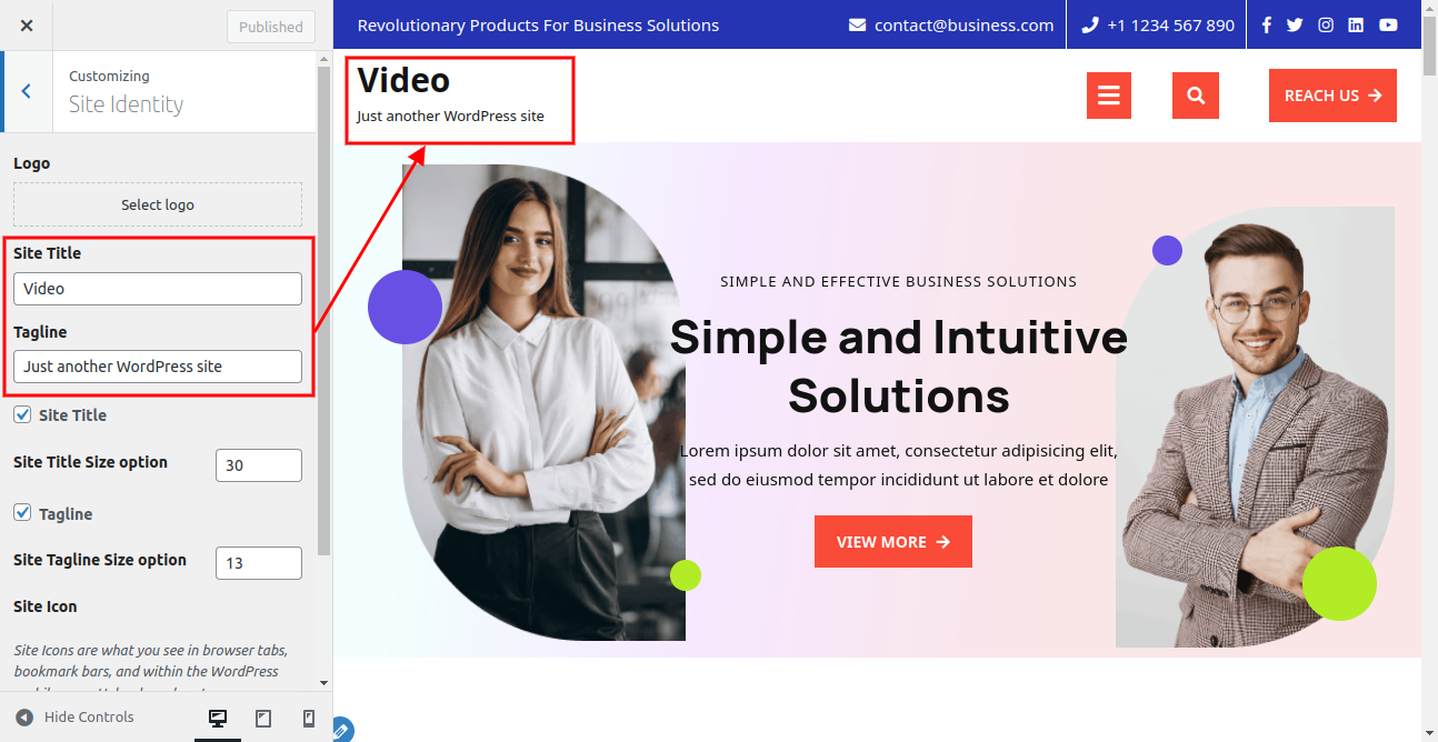 Here you can add you Site title and tagline for the theme