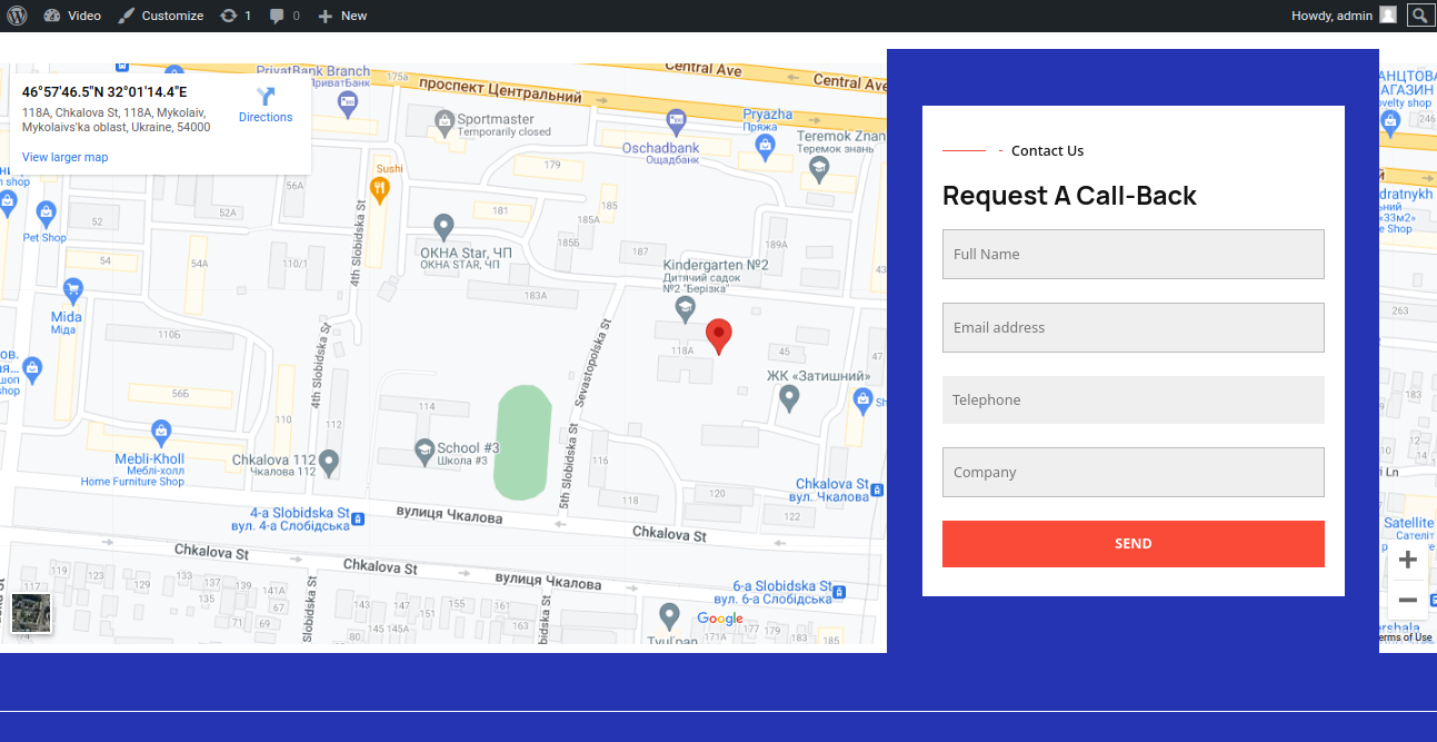 Your contact and map section will look like this.