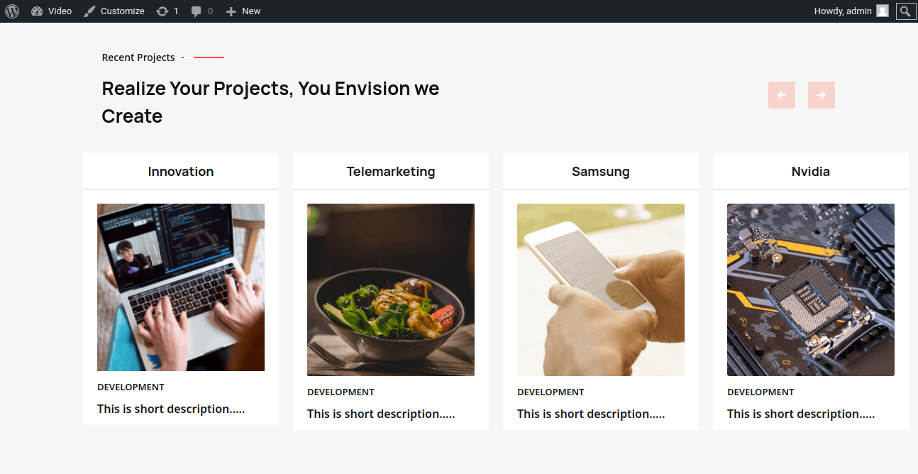 Go to Appearance >> Customize >> Theme Settings >> Our Projects