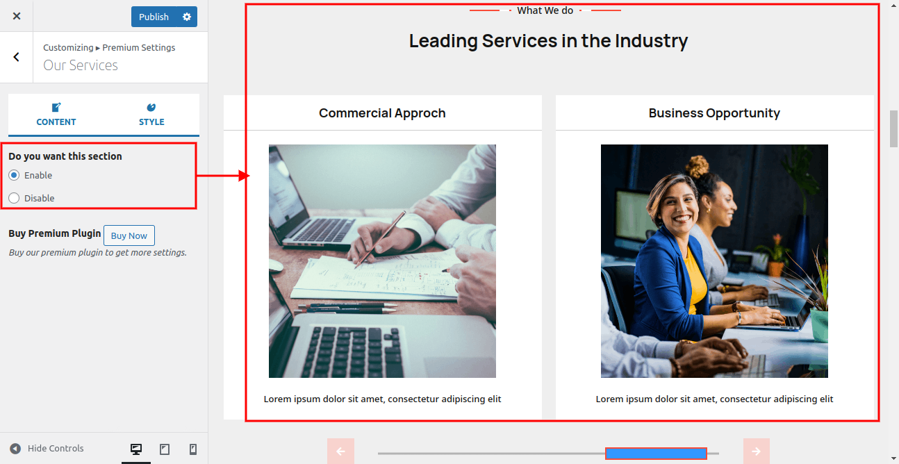 Setup Our Services Section